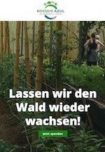 Mit Bosque Azul wollen wir dem fortschreitenden Waldverlust entgegenwirken. Denn tropische Regenwälder stabilisieren das Klima, indem sie große Mengen CO2 speichern: Über 700 Tonnen des klimaschädlichen Treibhausgases kann ein Hektar Regenwald aufnehmen. Außerdem wirken die wasserreichen, „blauen“ Wälder der zunehmenden Trockenheit entgegen und bieten Lebensraum für eine Vielzahl von Pflanzen- und Tierarten.